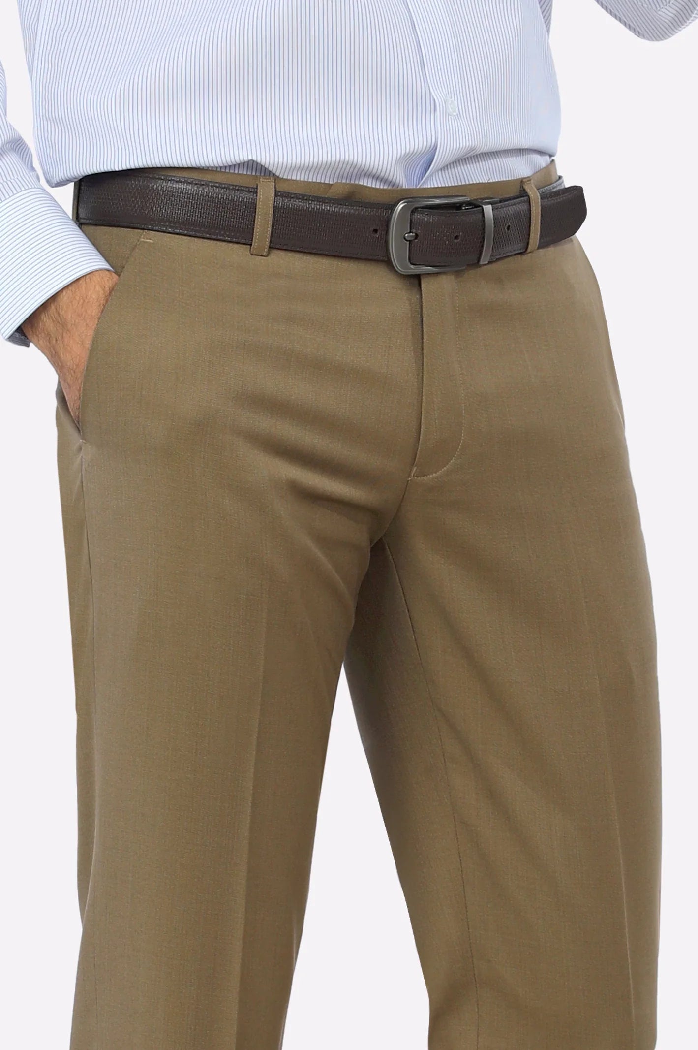 Dark Fawn Wash & Wear Regular Fit Trouser
